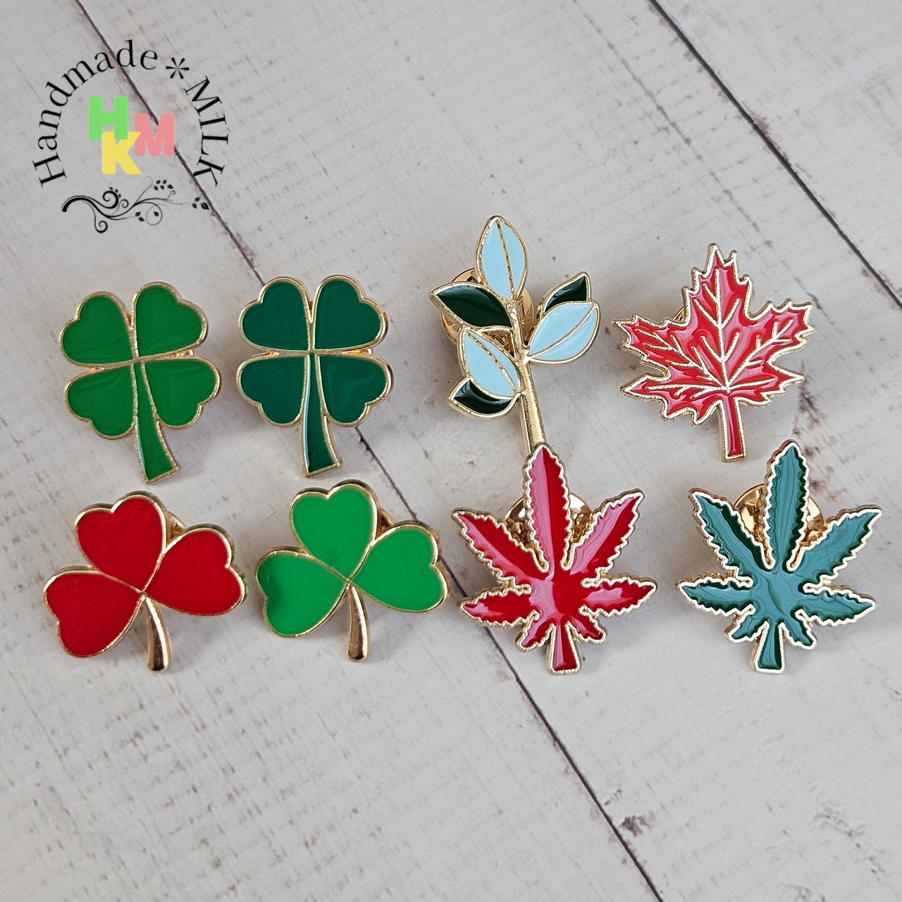ピンズ ピンバッジ ピンバッチ ブローチ 飾りボタン アクセサリー バッチ エナメル 蝶タック バタフライキャッチ リーフ 葉っぱ クローバー ファッション ワンポイント アクセント 普段使い プレゼント ギフト カワイイ オシャレ 色違い お揃い