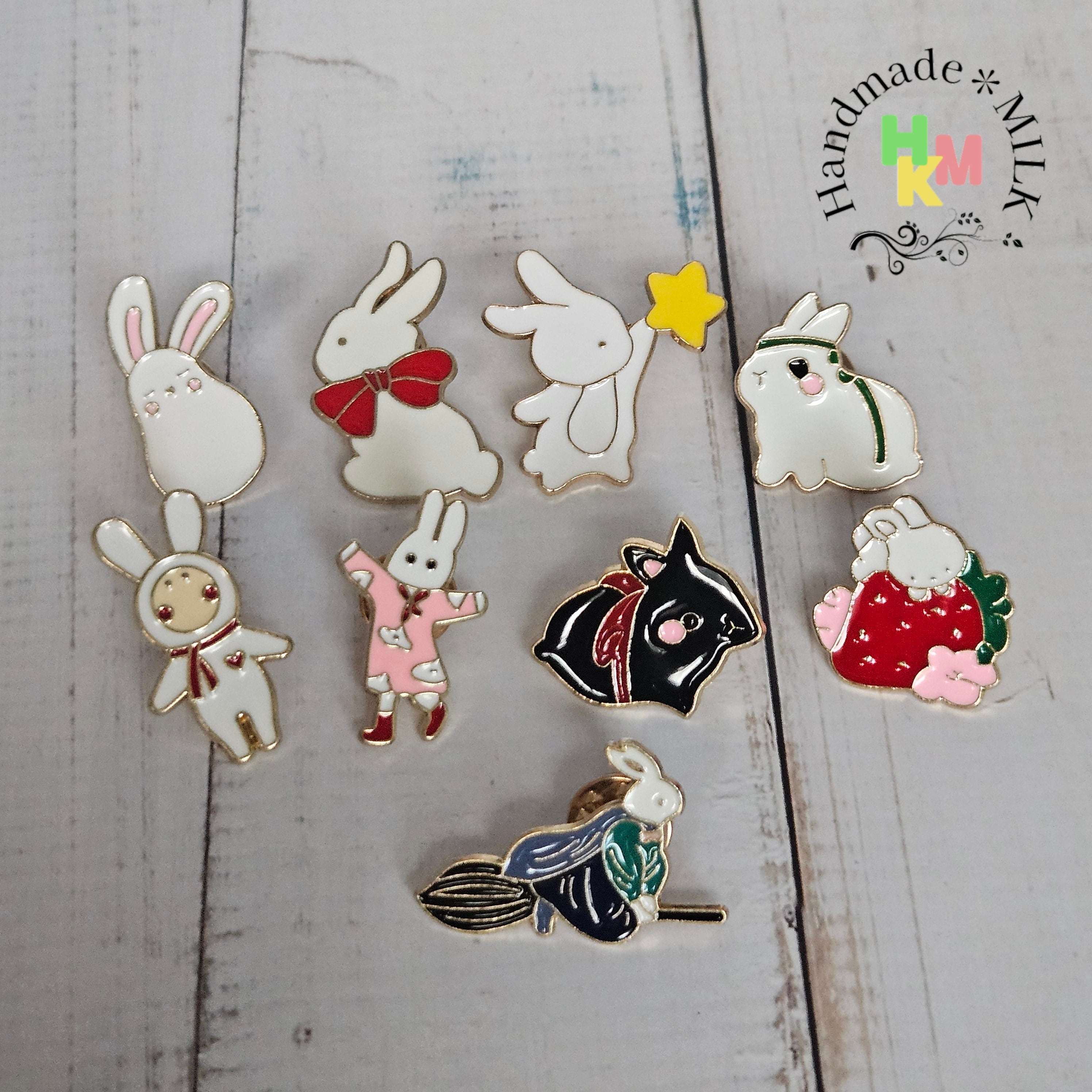 ファッションのアクセントに☆お洒落なピンズ うさぎ ラビット イチゴ 星 リボン 魔女 着ぐるみ 黒ウサギ ピンバッジ