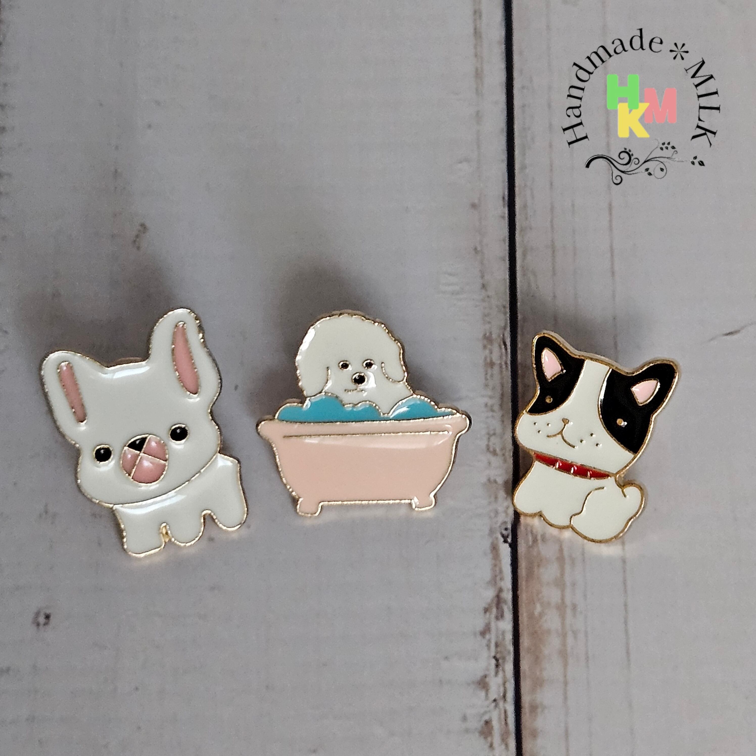 ファッションのアクセントに☆お洒落なピンズ 犬 白犬 お風呂 ハチワレ わんこ ピンバッジ