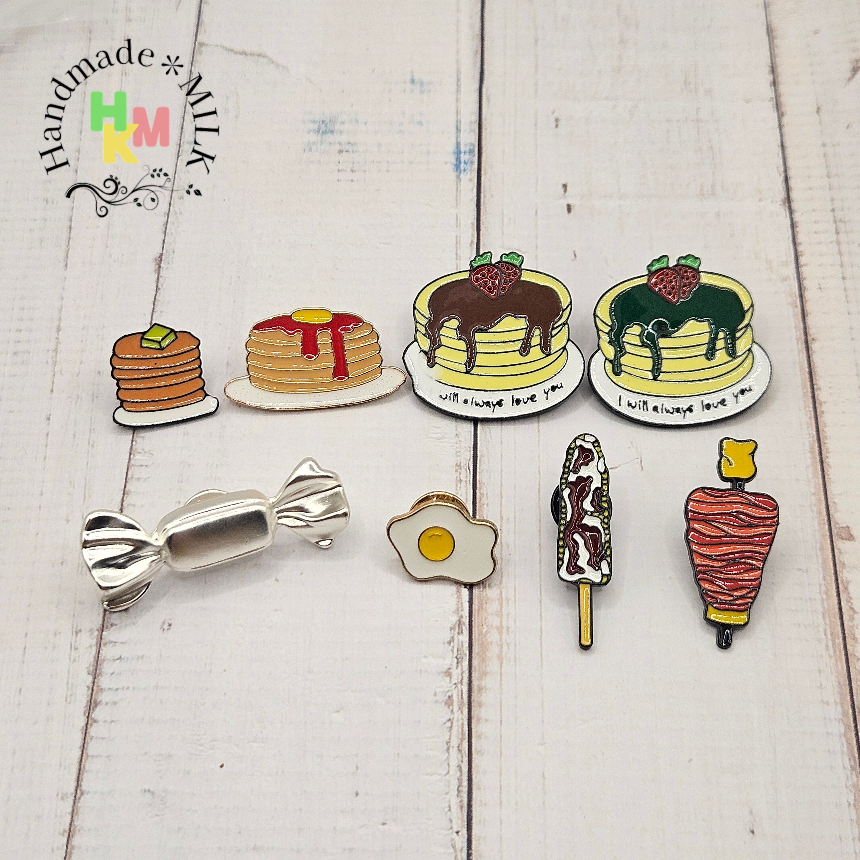 ピンズ ピンバッジ ピンバッチ ブローチ 飾りボタン アクセサリー バッチ エナメル 蝶タック バタフライキャッチ 食べ物 パンケーキ バター シロップ チョコ ソース 苺 キャンディ シルバー 銀 目玉焼き 串 ケバブ ファッション ワンポイント アクセント 普段使い プレゼント ギフト カワイイ オシャレ 色違い お揃い