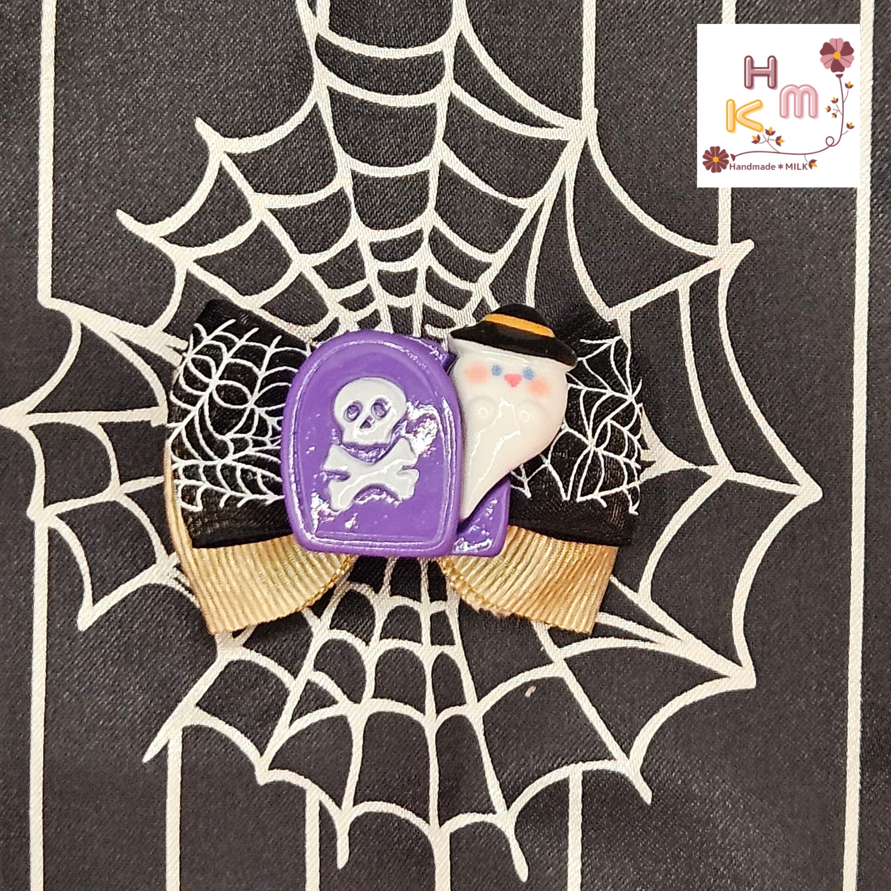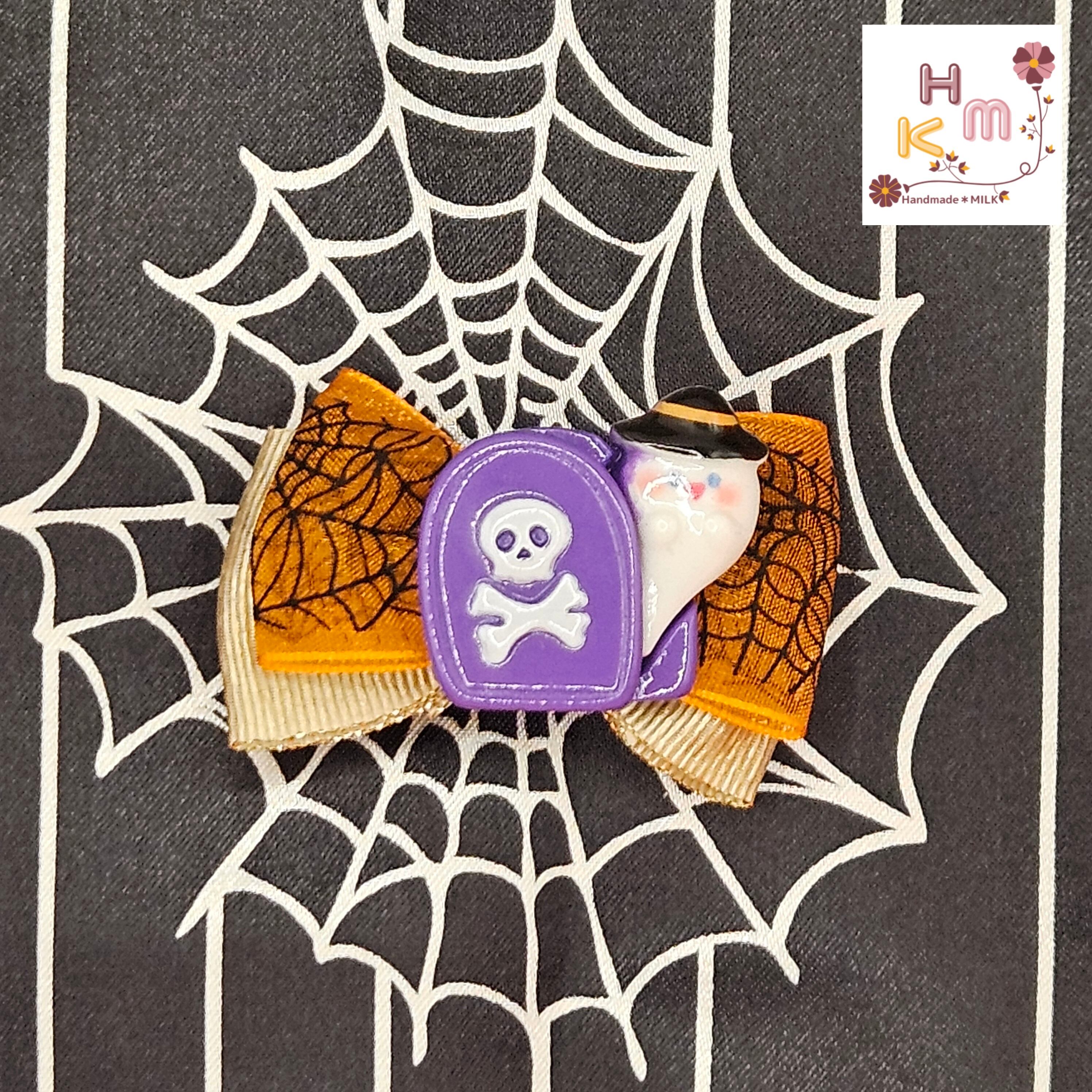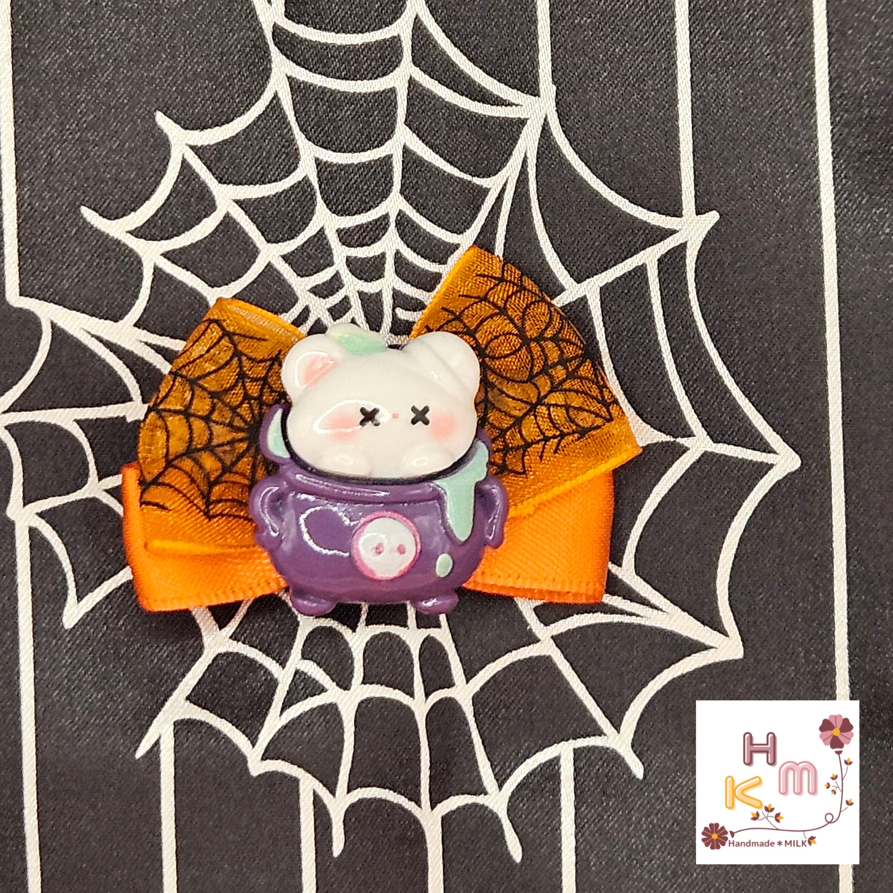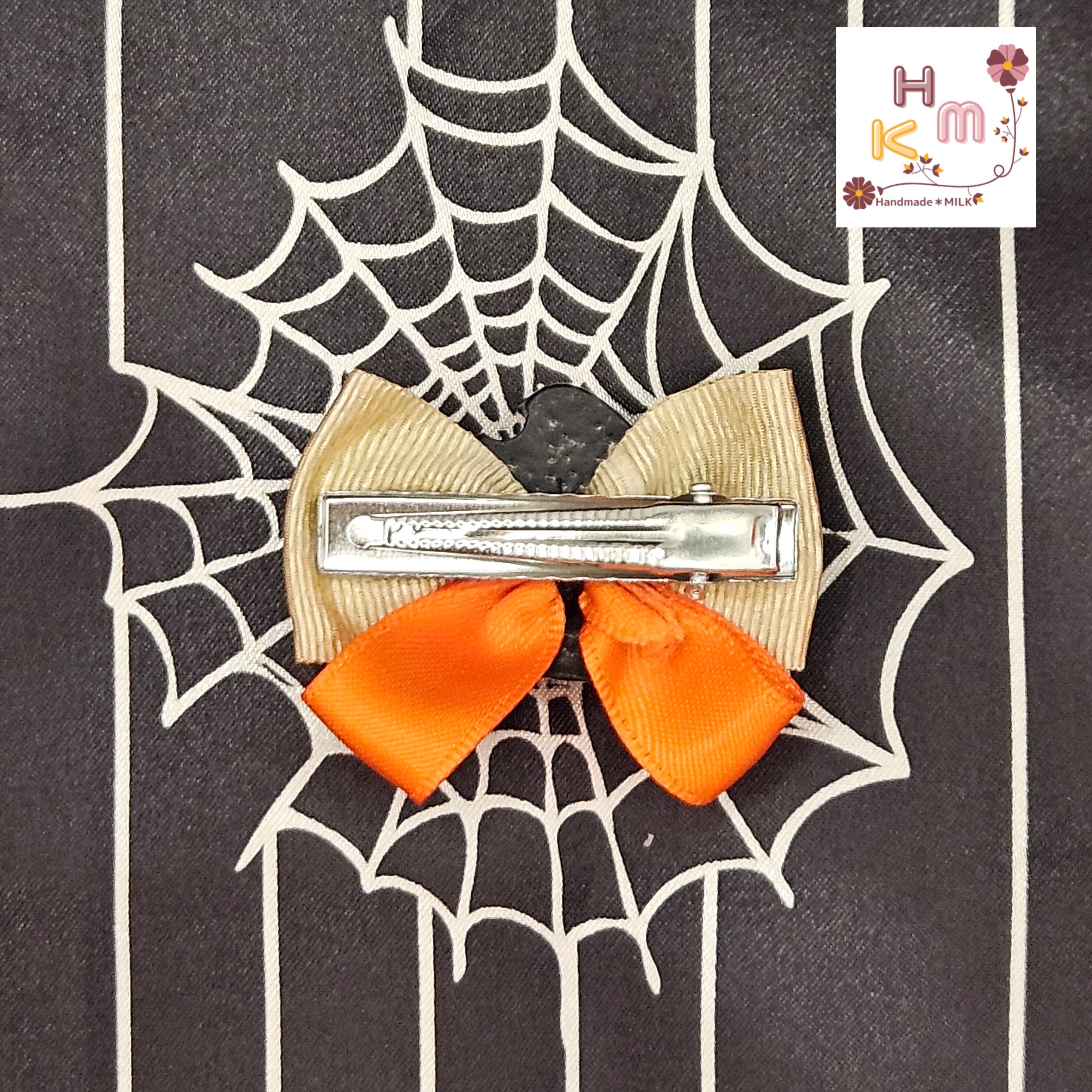 ハンドメイド 手作り ヘアアクセサリー 髪飾り 髪留め ヘアピン クリップ サテンリボン グログランリボン オーガンジーリボン オレンジ ブラック パープル ゴールド ラメ 蜘蛛の巣 猫 熊 兎 骸骨 壺 蝙蝠 南瓜 お墓 幽霊 お化け屋敷 ウィッチ ホウキ ハット ワンポイント カボション マスコット ファッション 普段使い プレゼント ギフト カワイイ オシャレ ハロウィンにオススメ