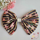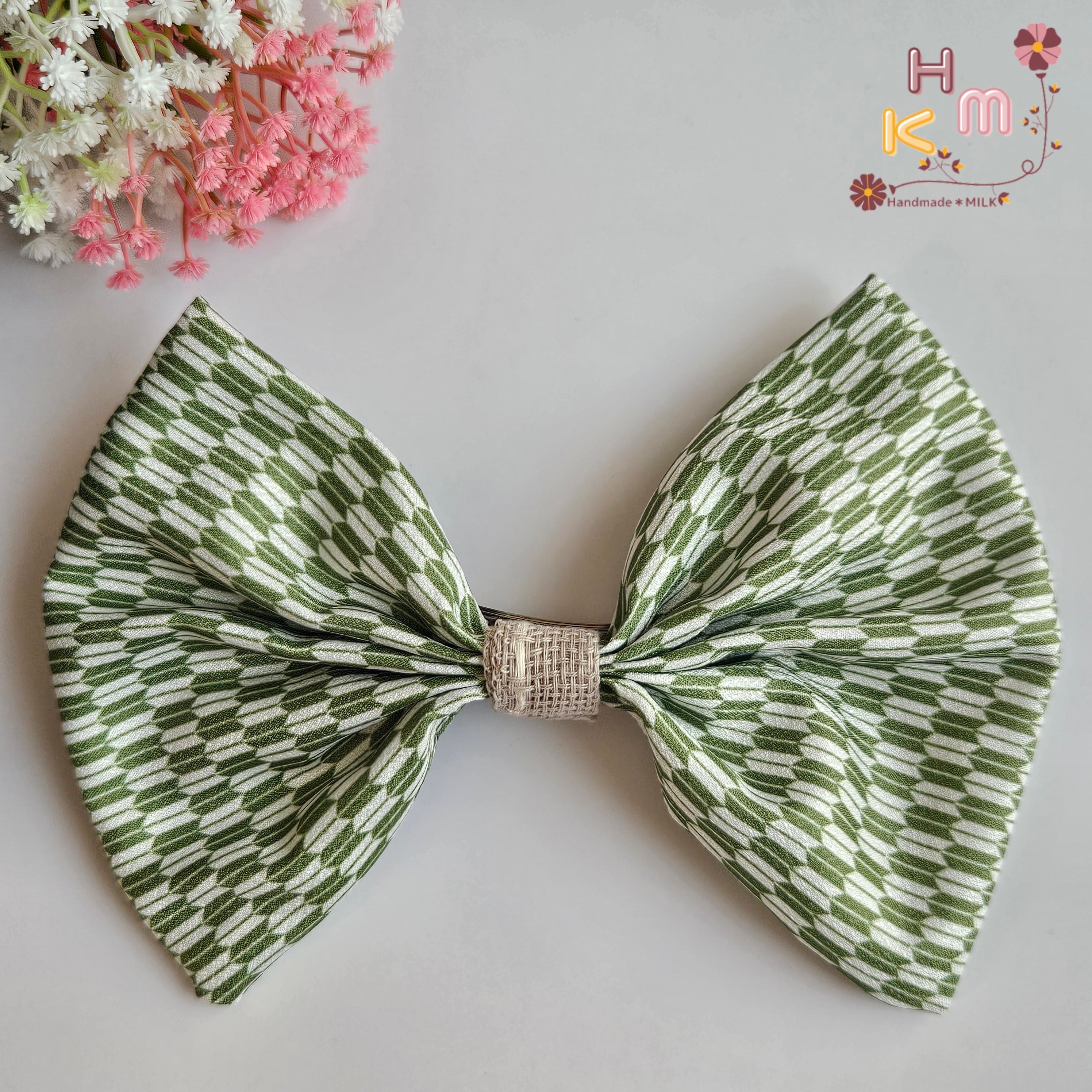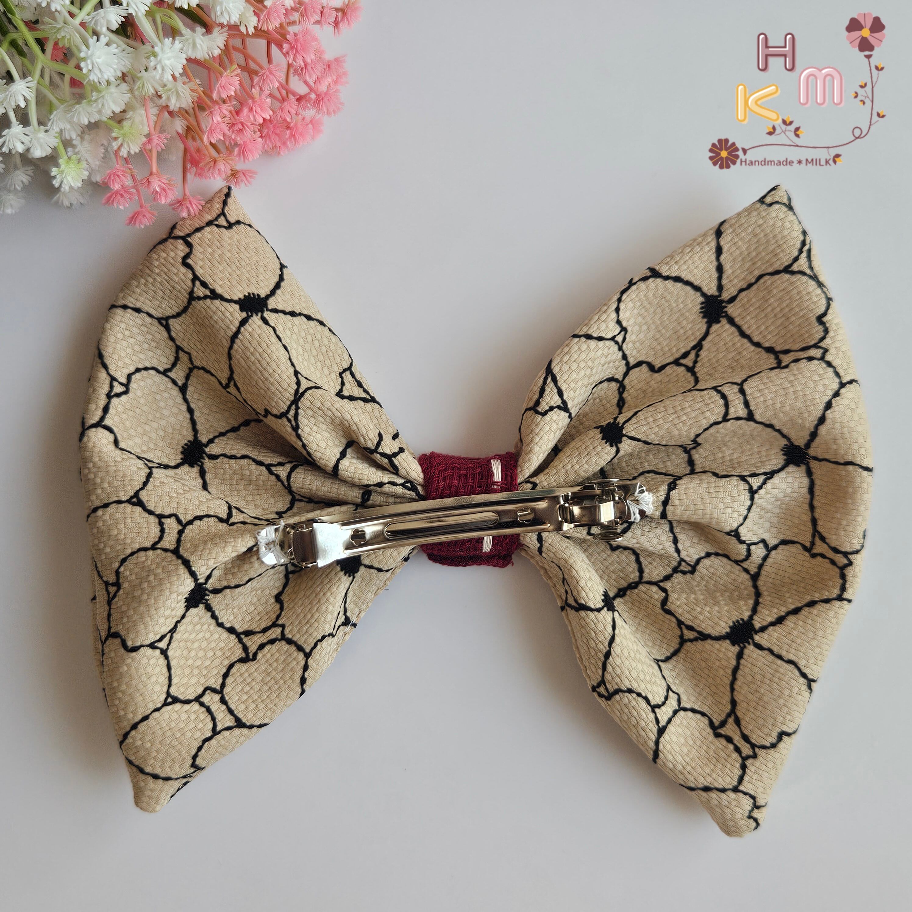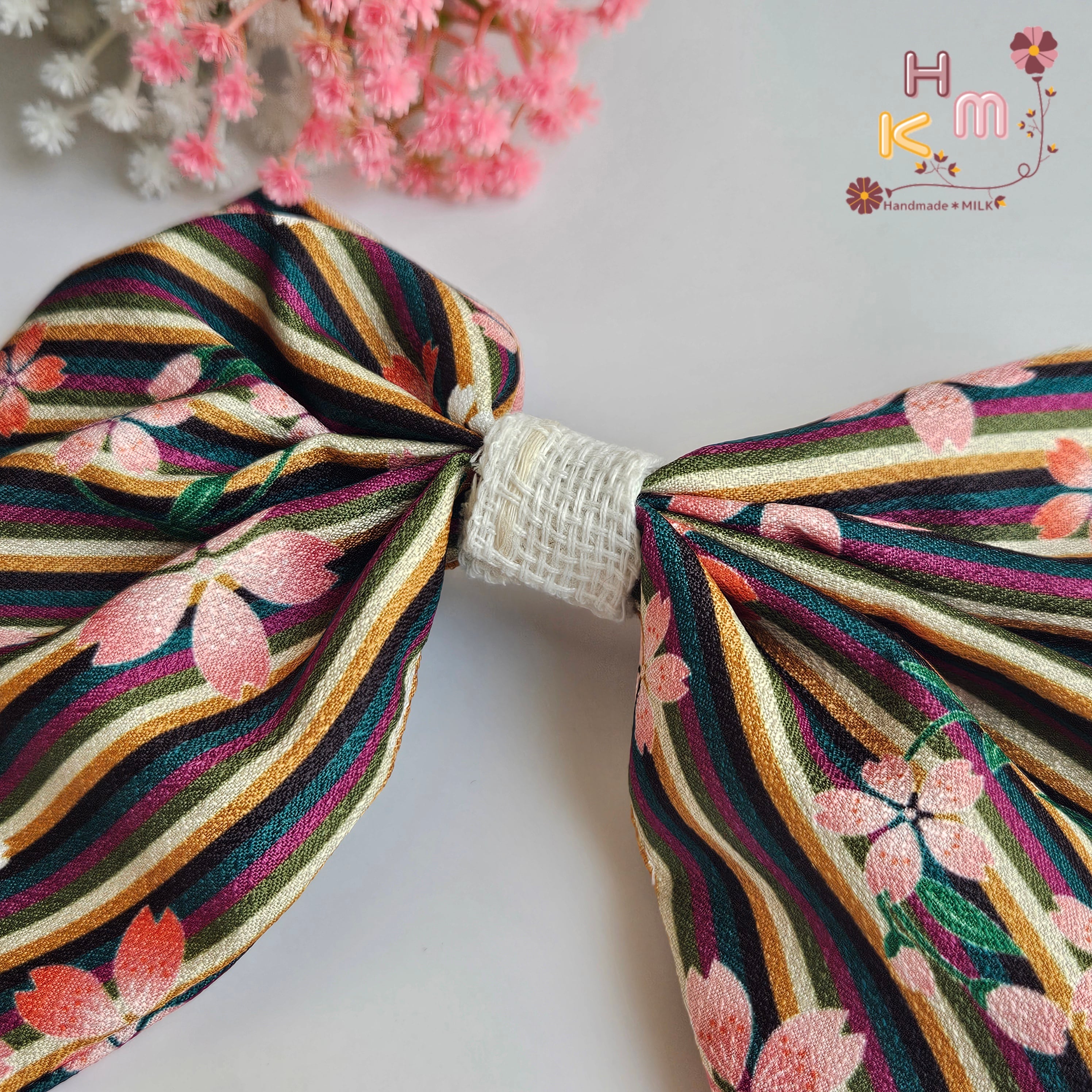 インパクト抜群*和柄で豪華なデカリボン ベージュ×花柄 ボーダー×桜 緑×白×矢絣 ポリちりめん ヘアアクセサリー 髪留め ハンドメイド