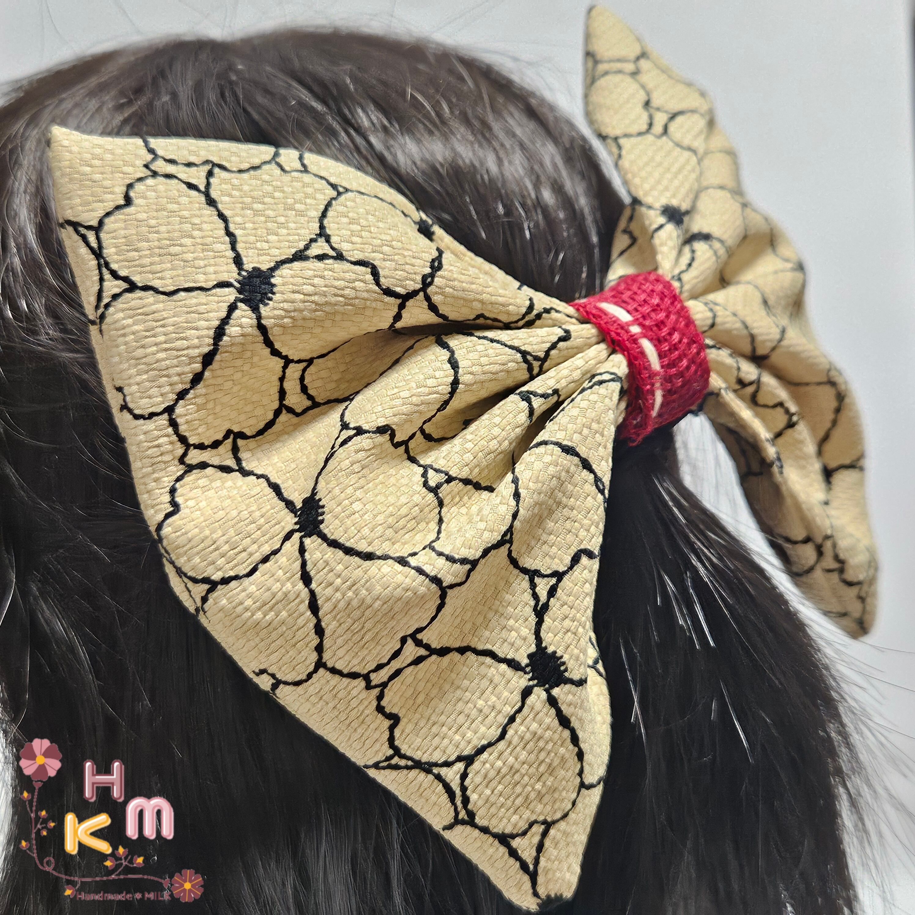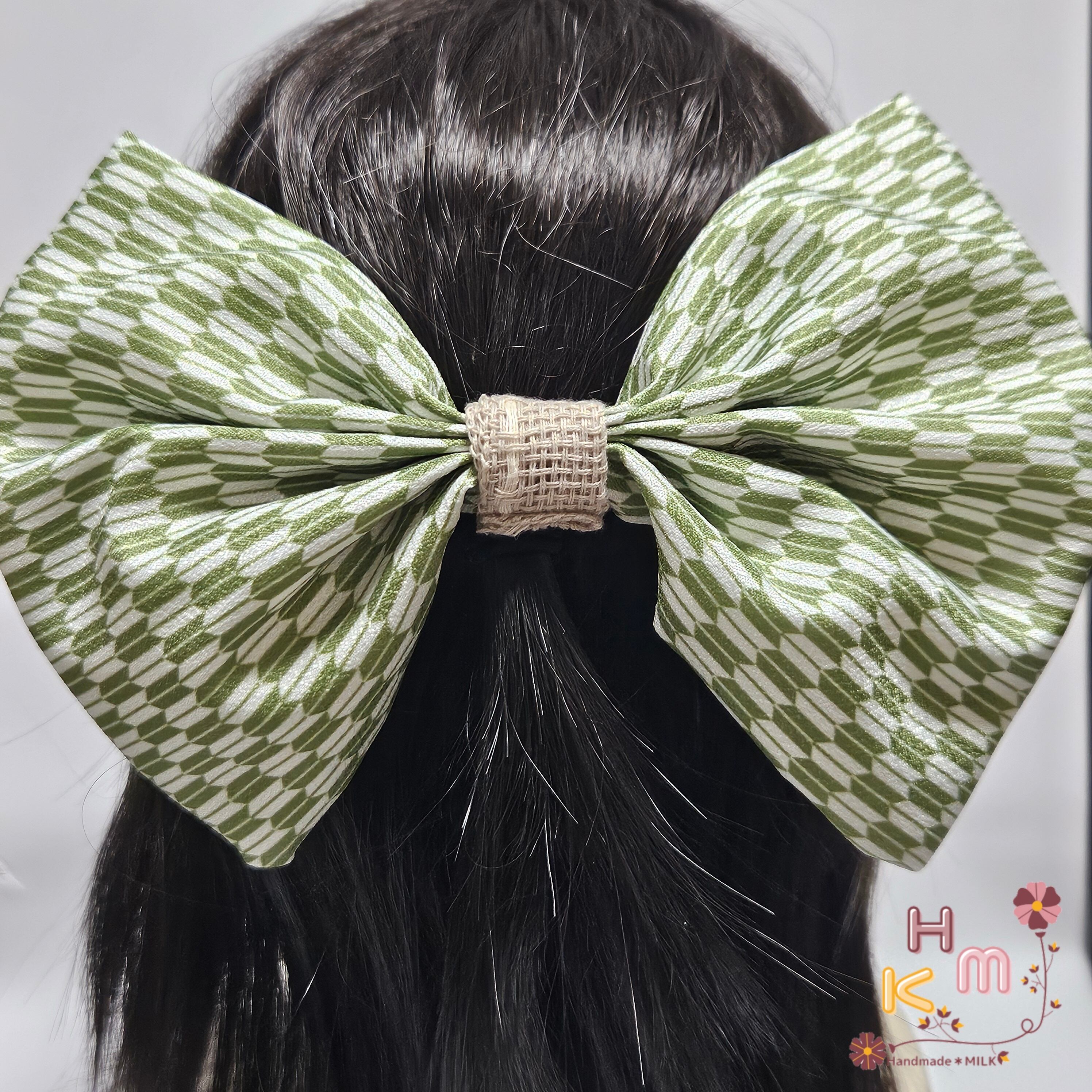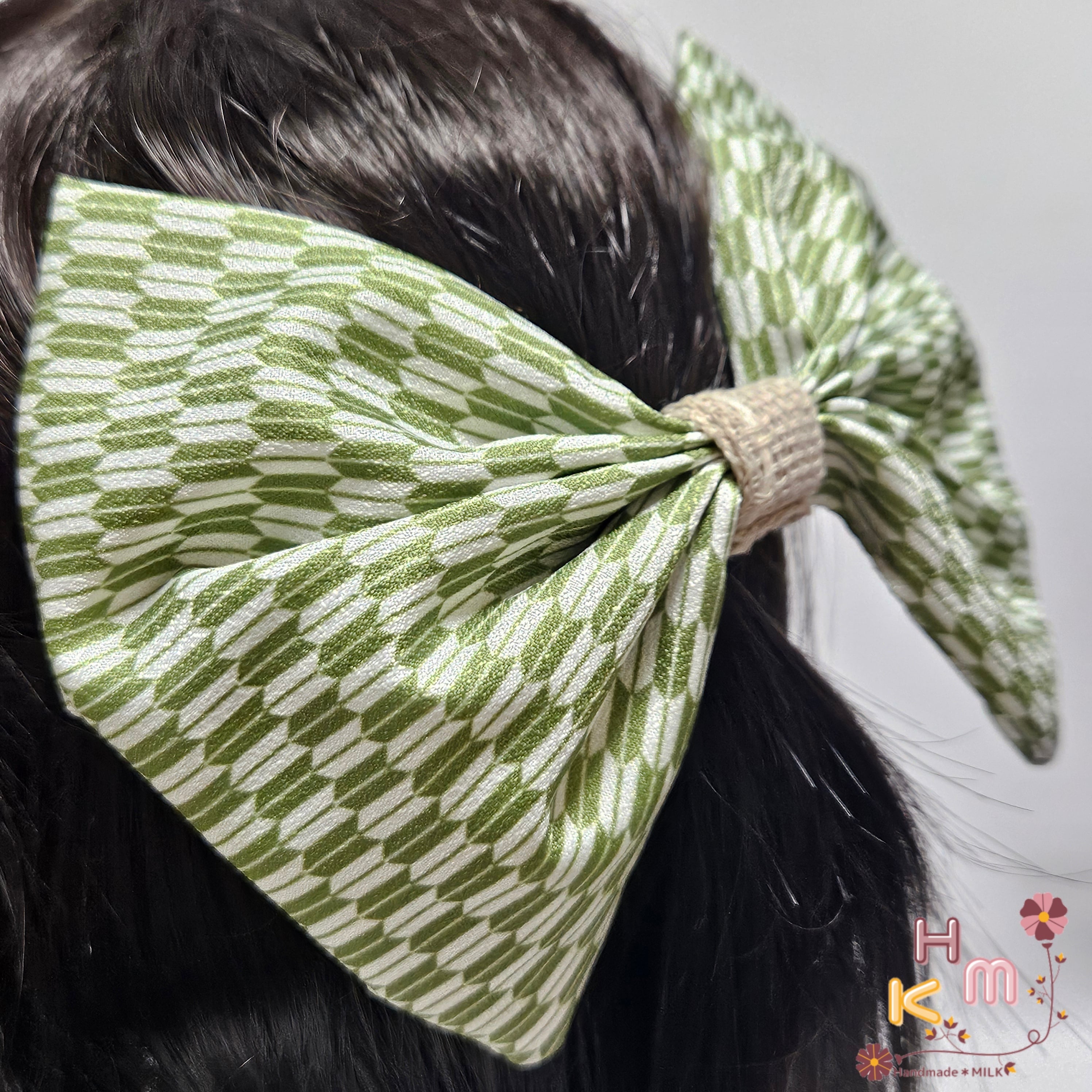 ポリちりめん・格子編みの生地を使った大きなリボンで着物や浴衣にピッタリ