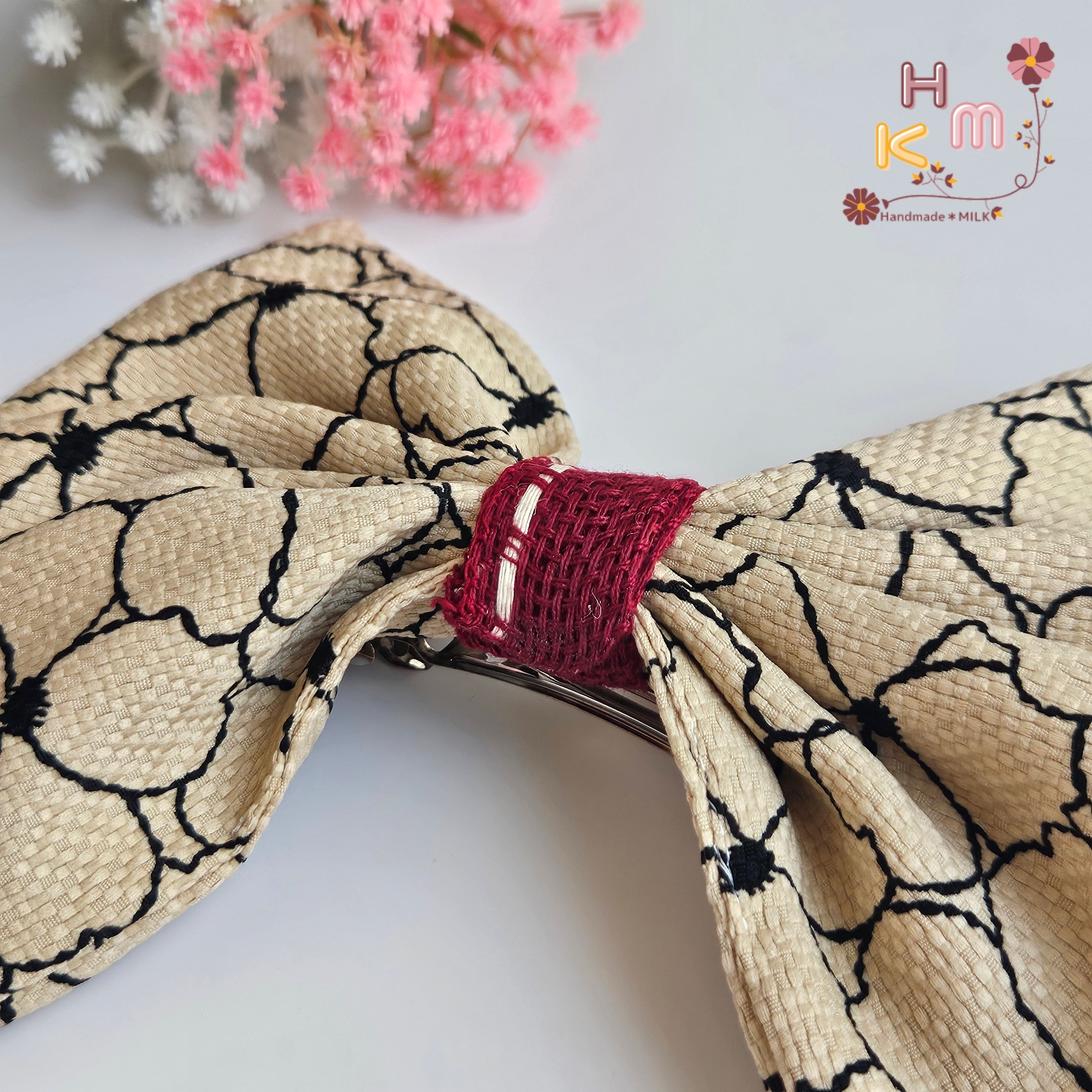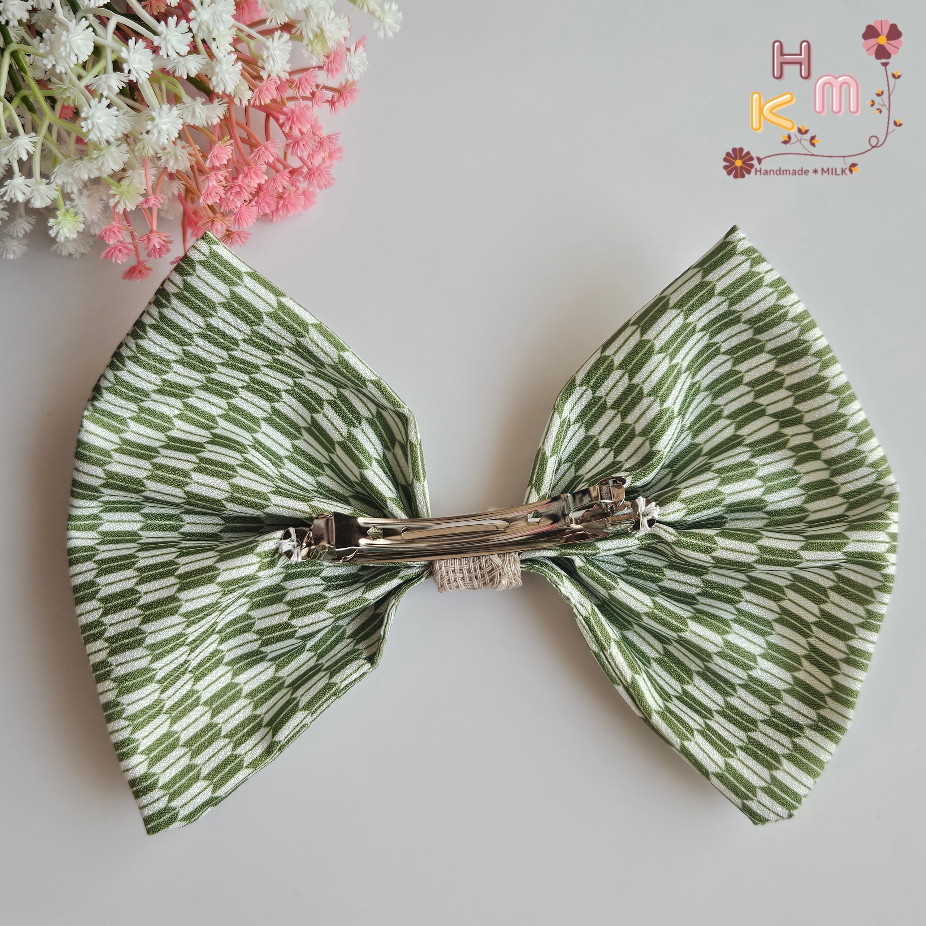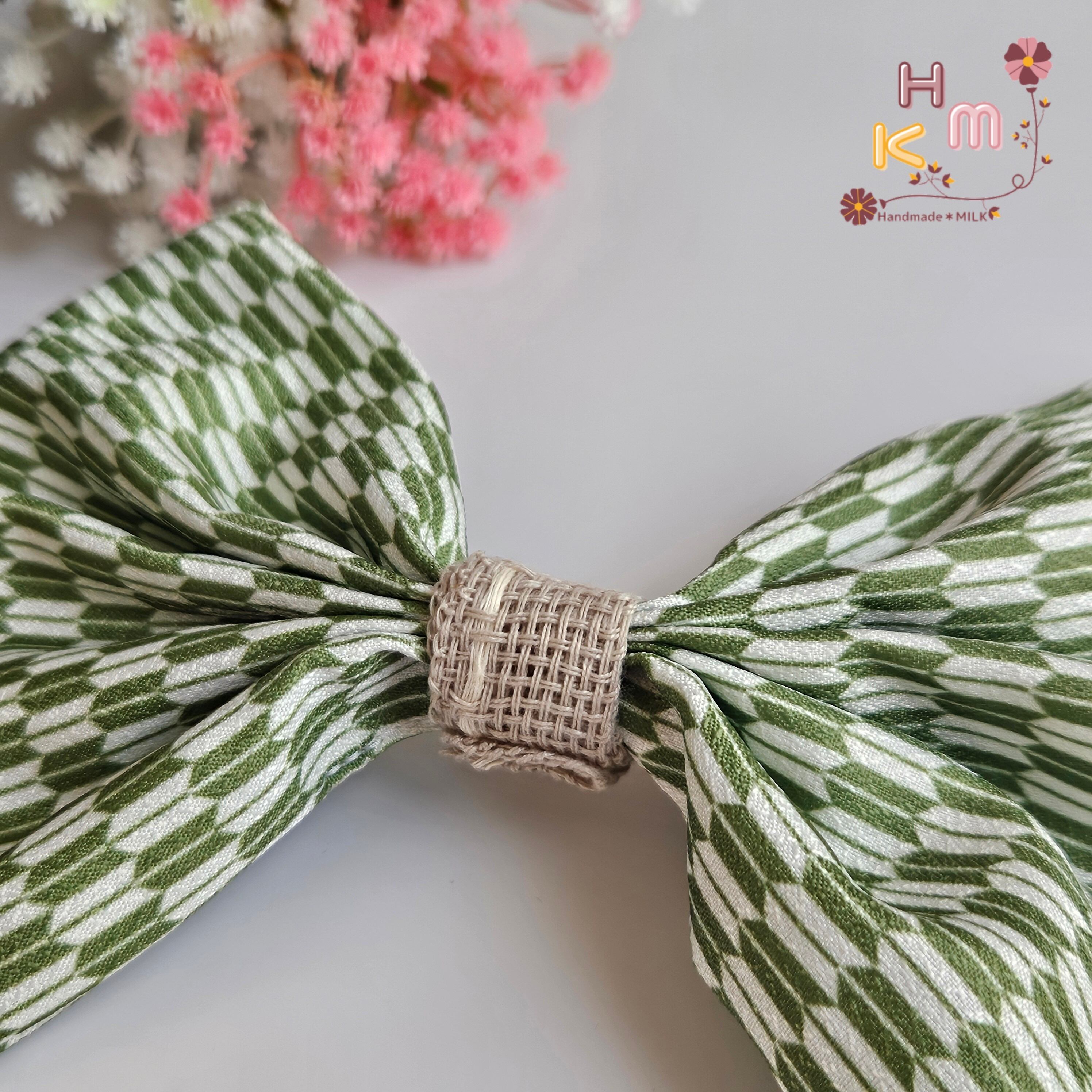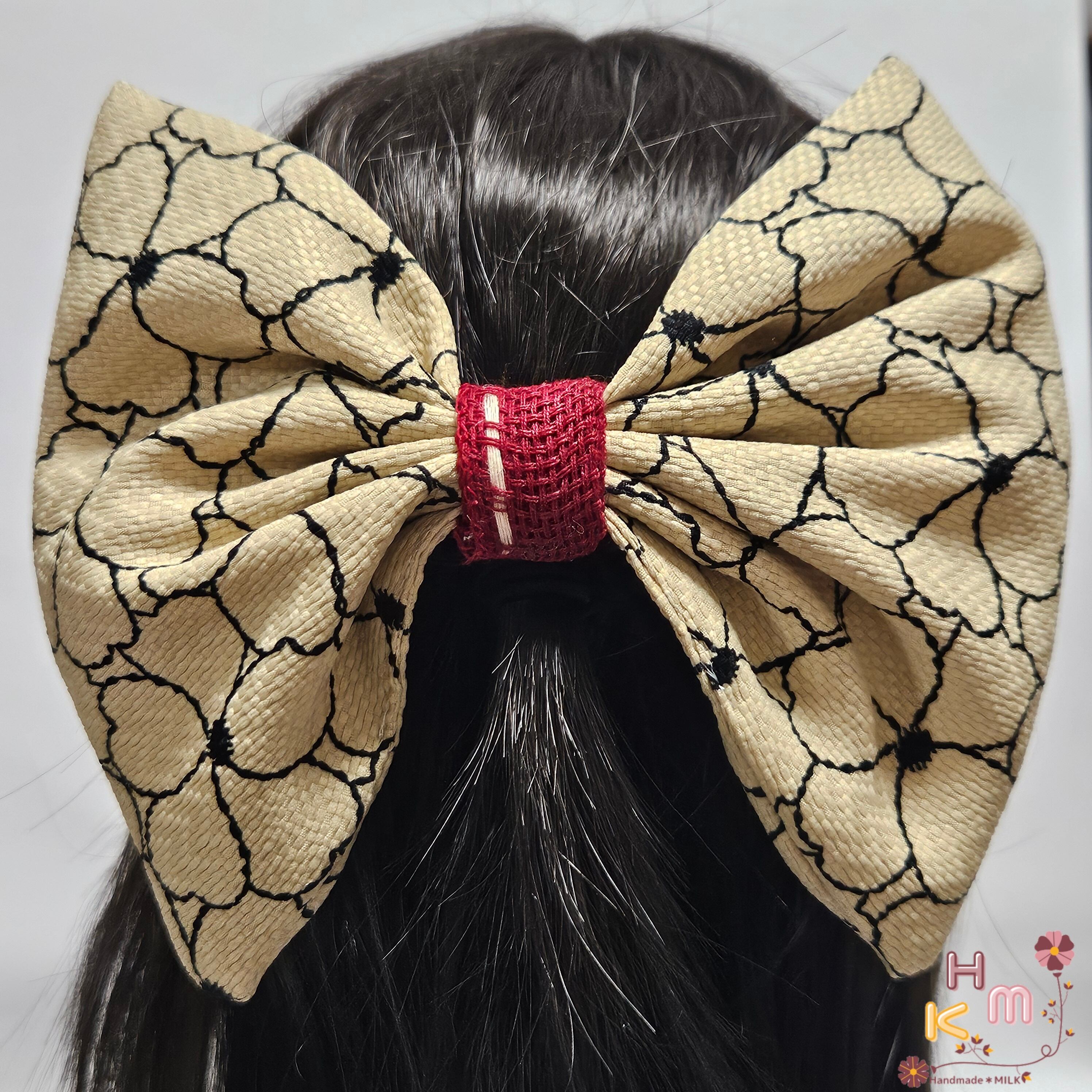 ポリちりめん・格子編みの生地を使った大きなリボンで着物や浴衣にピッタリ