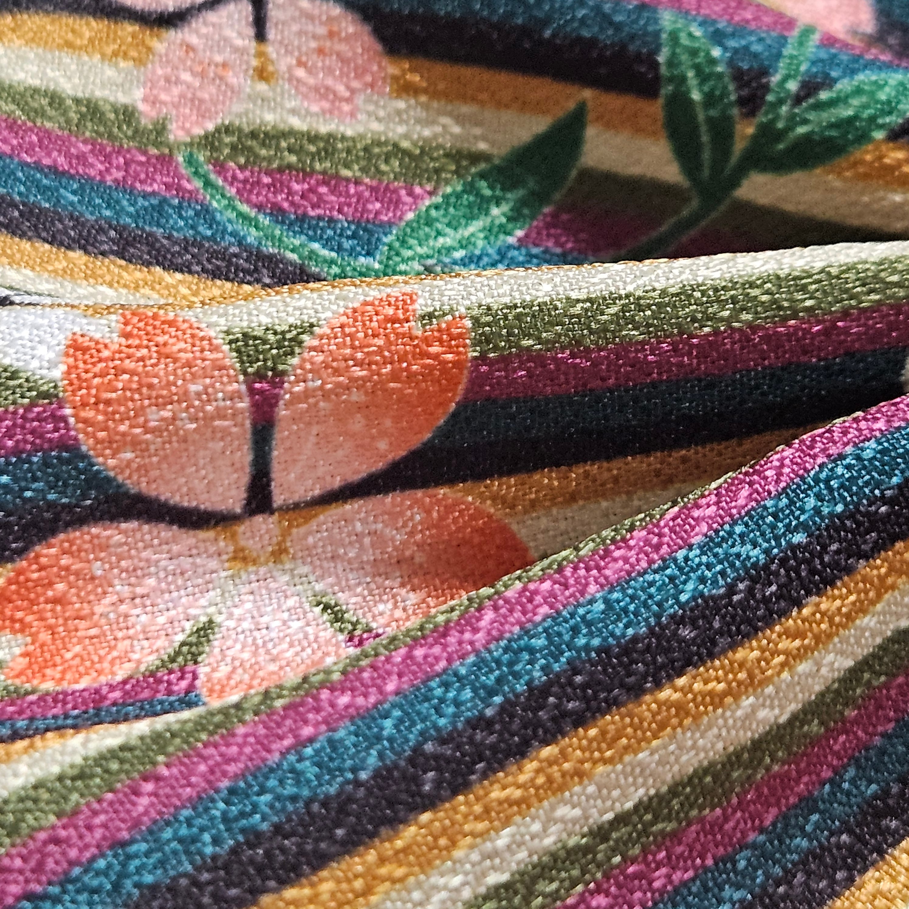 黒×緑×紫×若草×ベージュ×橙色の縞模様&桃色×赤×白の桜柄&和柄・白